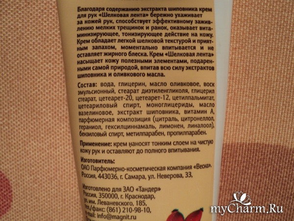 Сильная сторона этого крема – очень умеренный и слабо уловимый аромат. А когда полностью впитывается – то и вовсе ничем не пахнет. Мне это очень понравилось. Не люблю смешение разных запахов. А в зимний сезон, когда много времени мы проводим в закрытых помещениях, любые запахи плохо выветриваются, и иногда слишком надоедают и даже мешают жить. Так что, для меня, слабенький аромат – это хорошее свойство крема для кожи рук!Состав