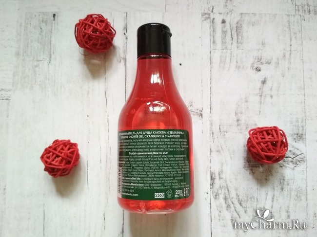 Гель для душа «Клюква и земляника» нисколько не стягивает кожу и не вызывает раздражения или сухости. Аромат средства сохраняется на теле лишь на некоторое время. Для меня, как и для многих женщин, это большой плюс: не хочется, чтобы из-за утреннего душа приходилось отказываться от парфюма. Да, для меня важно, чтобы гель для душа дарил хорошее настроение и заряд бодрости на целый день, но мне не нравится, когда его аромат сопровождает меня и после водных процедур.
