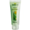 Крем нежно зеленого оттенка находится в прозрачном тюбике. На этикетке изображен коктейльный бокал, в котором огурчик и лимончик для украшения. Смотрится довольно мило.
