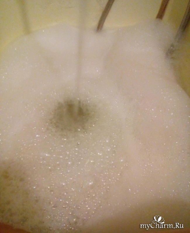 Пенится гель вполне хорошо, хватает небольшого количество, выдавленного на руку или мочалку, чтобы полностью вымыть все тело. Так же я пробовала гель в качестве пены для ванны. Под струёй воды подставляла два колпачка с гелем. Пена появлялась сразу довольно густая и обильная, но, скажу честно, минут через 5-10 она оседает. Это не очень приятный момент, так как не все за это время успевают насладиться такими приятными водными процедурами.