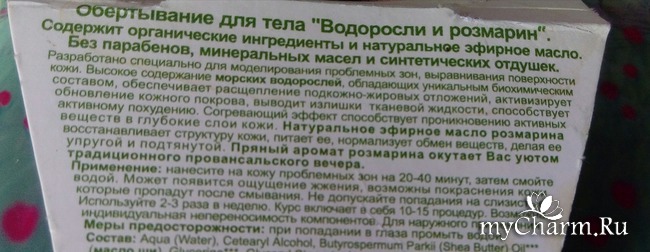 Сегодняшний мой обзор будет про временную «одёжку» для наших маленьких или больших (у кого как) любимых проблемненьких мест, а точнее - об обёртывании для тела «Водоросли и розмарин» от Nature de Province. Вот такая интересная упаковочка меня к себе манила, прельщала и уломала-таки на покупку. Всё банальней некуда: скидку объявили. И как я могла в этом-то случае мимо пройти?!