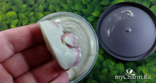 Крышка на баночке пластиковая и снимаемая. Стягивается, кстати, не очень легко: я берегу ногти при этом действе. Но и не откроется при случайном соприкосновении при перевозке, если таковая понадобится. Никаких выемок под пальцы нет. Захлопывается со щелчком