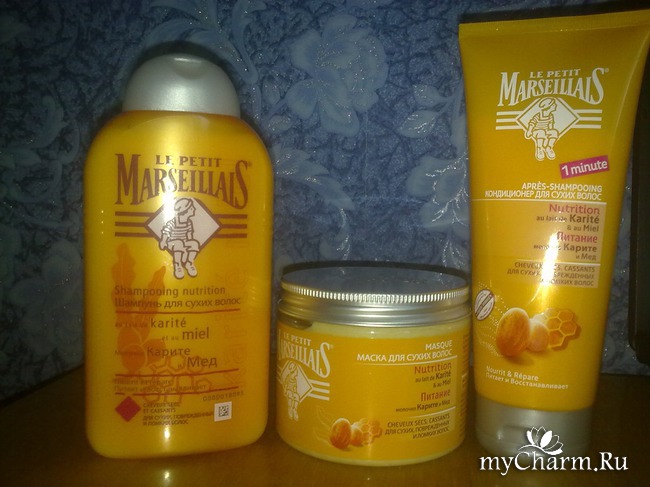 Многие уже видели в посте об уходе за волосами своими, что я последние месяц-два использую набор от Lе Petit Marsellias Мед и молочко каритэ.