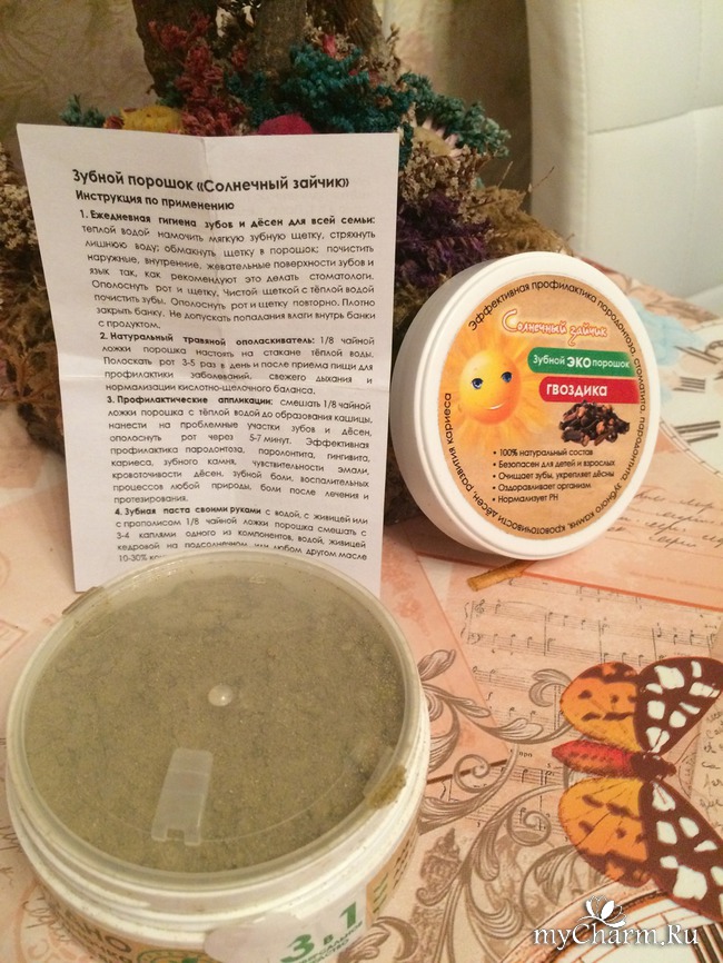 Сегодня я хочу поведать о "волшебном" порошке, а именно о Зубном ЭКО порошке "Солнечный зайчик" со вкусом гвоздики от ООО "Корпорация СОЛНЦА". Данный продукт достался мне на тестирование, и я очень рада, что мимо меня не прошло это драгоценное создание. Сама организация находится в Челябинской области. Компания создает натуральную косметику, которая предназначена для всей семьи. Огромный и жирненький плюсик компании в том, что все продукты экологически чистые и натуральные. Все полностью создано природой. На официальном сайте есть видеоролик, в котором говорится о начале создания представленного мной зубного порошка. Скажу, что он (ролик) воодушевляет на то, чтобы перейти на безопасные косметические средства, которые принесут только пользу для нашего здоровья!