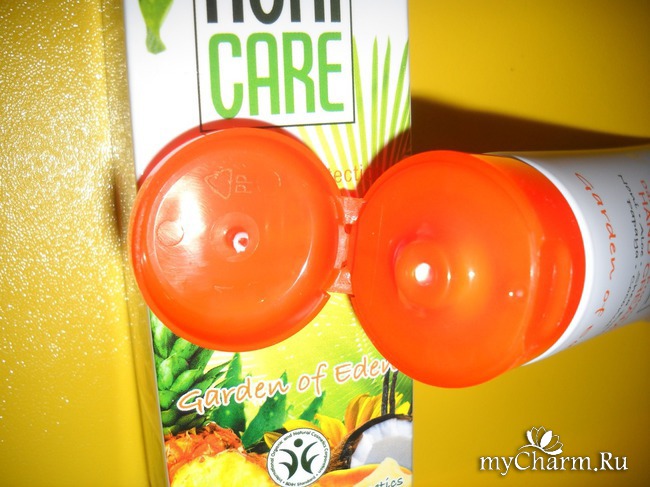 Комплекс активных компонентов, образованный экзотическими растениями и натуральными растительными маслами, смягчает кожу, нормализует кровообращение, стимулирует клетки кожи к скорейшей регенерации, а также быстро ликвидирует шелушение и сухость, делая кожу шелковистой и удивительно гладкой. Витамины E и C помогают ускорить заживление трещинок и ранок, а экстракты папайи и ананаса, наделенные способностью оказывать деликатное отшелушивающее воздействие, помогают улучшить цвет и текстуру кожи. Сок Нони славится своим антивозрастным и антиоксидантным действием, а масла кокоса, ши и клещевины великолепно увлажняют и питают кожу рук, кутикулу и ногти, а также помогают укрепить сухие и тонкие слоящиеся ноготки. Ну а произведен этот чудесный продукт в Польше, хотя сам бренд – немецкий.