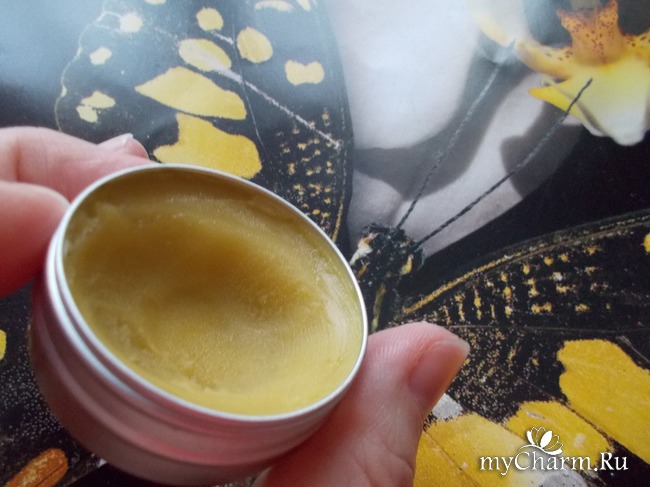 Воск для лица имеет плотную текстуру, напоминает вьетнамский бальзам звездочку, темно-желтого цвета, как мазь. Диаметр баночки четыре сантиметра. Аромат у воска особенный, пахнет разноцветьем полей и лугов. А запах пчелиного воска ассоциируется у меня с деревней, поэтому вдыхаю я аромат и надышаться не могу.