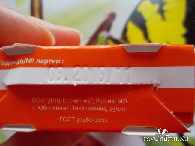 А сама плоская баночка упакована в картонную коробку оранжевого цвета. В аннотации нет ничего пространного и лишнего. Информация краткая и по существу, что мне очень нравится.