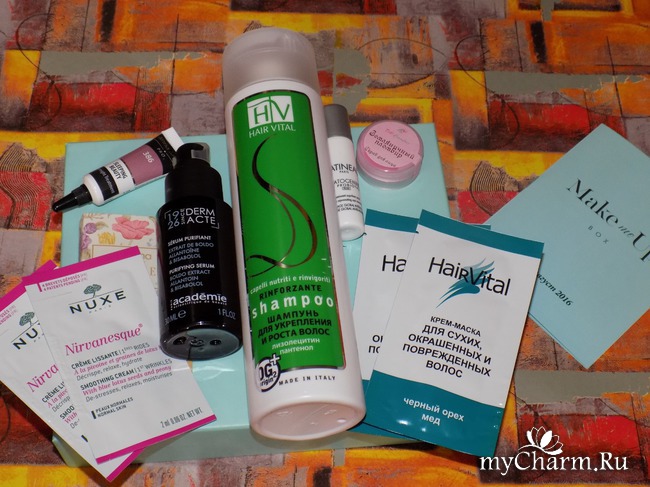 Например, в выпуске Make me up box в августе 2016 у меня были следующие продукты. С некоторыми из них я уже близко познакомилась, о них расскажу подробнее по ходу дела.