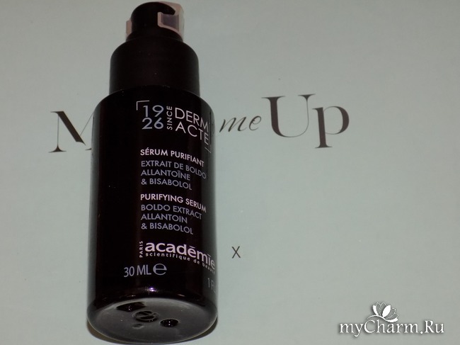 Полноразмерный флакончик 30 мл с пульверизатором (черный флакон) Очищающей сыворотки Serum Purifying от Academie (уже знакомилась с этим брендом в других коробочках бьюти-сервиса).