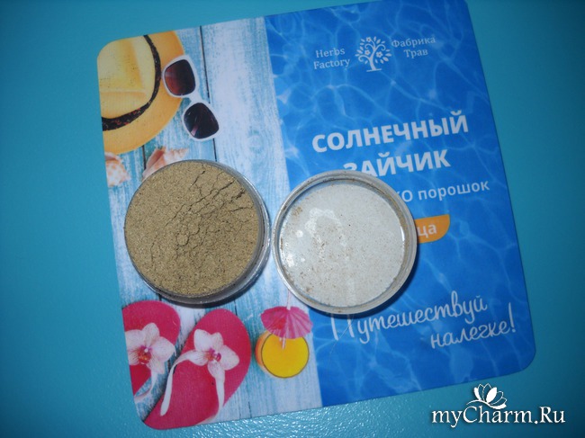 На прочной ламинированной картонке красуется надежно прикрепленная мини-баночка с порошком. Это идеальный вариант для путешествий – и места много не займет, и в то же время в сумке не потеряется! Более того, такая «баночка» без особого труда уместится в абсолютно любую сумку, даже в вечерний клатч, а ее скромный объем в 5 мл (что равно весу в 6 г) поспособствует уменьшению общего веса багажа или ручной клади (так как это сухой продукт, его можно смело брать с собой даже в ручную кладь)! Неспроста производитель поместил на самом видном месте замечательный девиз: «Путешествуй налегке!». А красочная упаковка с изображением шляпки, солнцезащитных очков, ракушек, фруктового коктейля и сланцев моментально пробуждает желание отправиться в дальние страны!