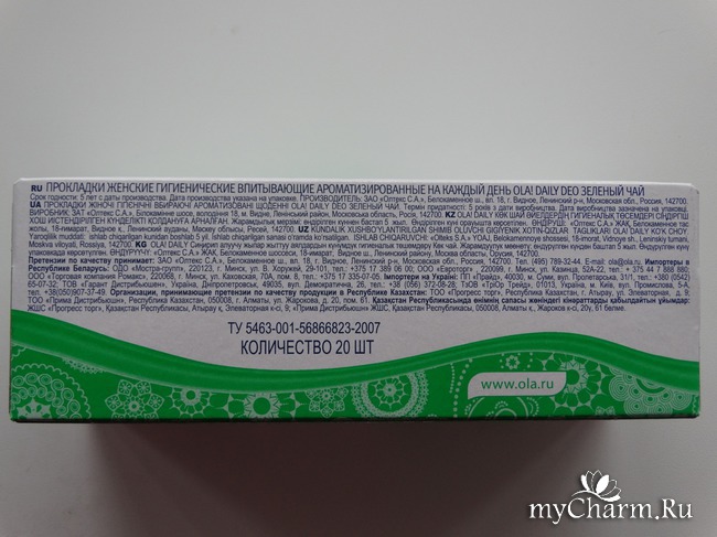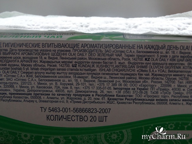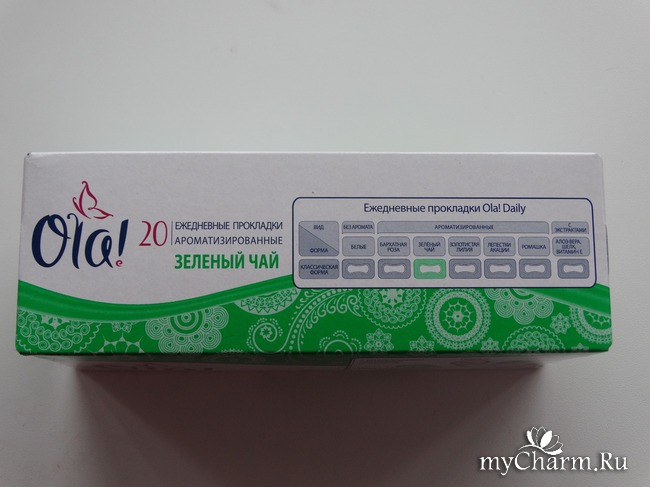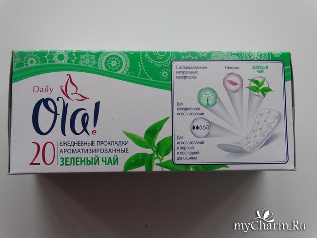 С этой целью в данном обзоре я предлагаю рассмотреть "Daily" ежедневные прокладки ароматизированные "Зеленый чай" от фирмы "Ola!".