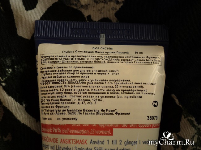 Хватит лишних слов. Приступим к описанию. Глубоко очищающая маска Pure System от Yves Rocher представлена в небольшом тюбике объемом 50 мл. Как говорит великий профессор Гугл, стоимость продукта составляет 490 рублей (ноябрь 2015 г). Многие посчитают цену завышенной за такой маленький тюбик, и будут не правы, поскольку эта маска того стоит! Да, и расходуется она очень экономно. Надо сказать, что тюбик удобен в применении, он оснащен плотно защелкивающейся крышкой, открытие и закрытие которой не доставляет никаких сложностей. На обратной стороне имеется вся необходима для потребителя информация, правда, нанесена она на бумажный стикер. Это радует, поскольку производитель позаботился о русскоязычном населении.