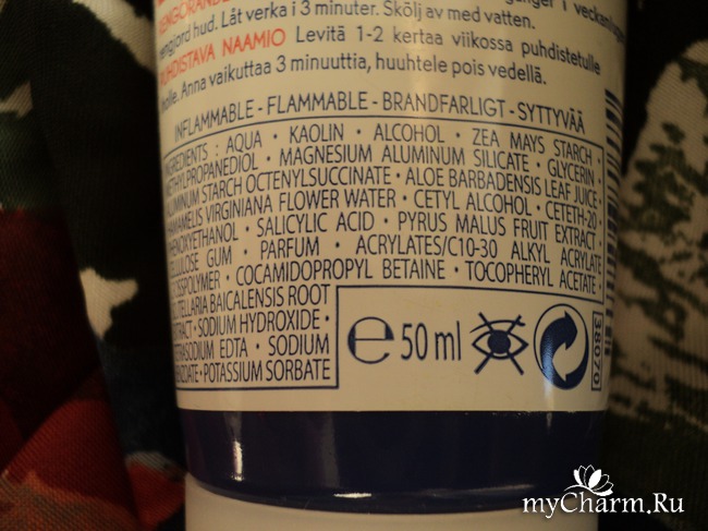 Чем мне понравилась маска?! На коже ее нужно держать всего на три минутки. Как правило, каолиновые маски наносят на 10-15 минут. Лично меня этот факт очень радует, поскольку я не люблю присутствия чего-то лишнего на своей коже. За это время маска даже не успевает подсохнуть, и, кстати, чувства сильного стягивания нет, как от любых других глиняных масок. Кожу немножко пощипывает и покалывает, чувствуется легкое тепло, раздражения нет. Смывается маска без особых проблем теплой проточной водой.