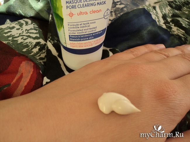 Сама маска довольно густая, но легко выдавливается из тюбика. И да, она глиняная, в составе на втором месте числится каолин (для тех, кому неизвестно, это белая глина). Консистенция однородная, без вкраплений и посторонних примесей, кремово-белого цвета. Запах своеобразный, но не резкий, мне кажется, что больше отдает салициловой кислотой. В принципе, это нисколько неудивительно, ведь в составе числится этот компонент, а, как известно, его часто включают в уходовую косметику, предназначенную для борьбы с прыщами и угрями. Пойдем, пожалуй, дальше.