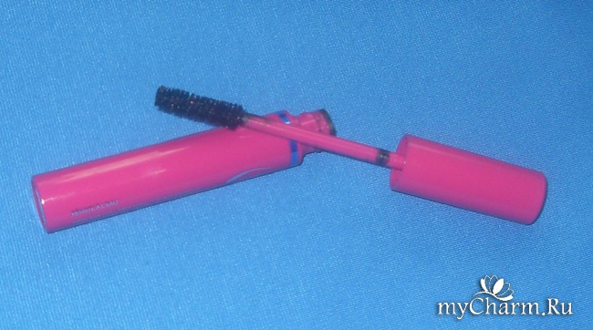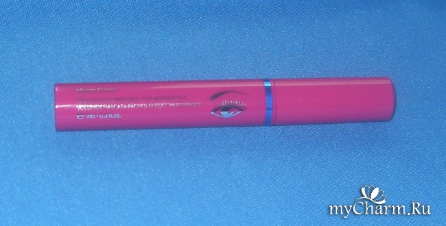 Как я уже писала выше, цвет футляра оттенка фуксия, очень удачное решение для привлечения внимания. На изящном корпусе серебристым цветом приведено полное название туши и синим тоном металлик поставлена пометка waterproof, которая говорит о том, что тушь водостойкая.