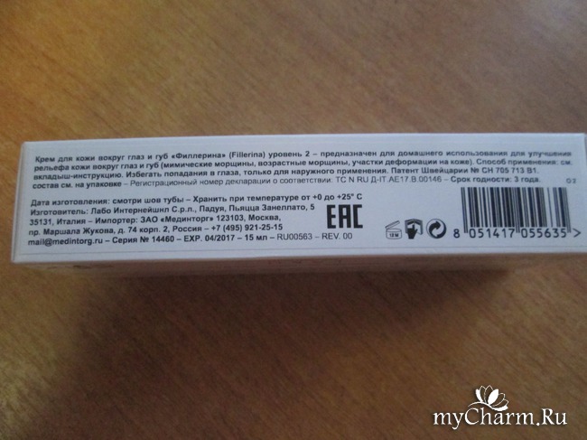 К месту скажу, что такой же крем 1-го уровня применяется при умеренных возрастных и мимических морщинах, неровностях микрорельефа кожи губ и век. 3-ий уровень крема для губ и век Филлерина призван справляться с глубокими возрастными и мимическими морщинками, сильно выраженными неровностями микрорельефа.