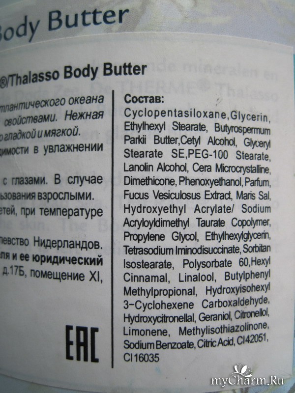 Во-вторых, взбитое масло Therme Thalasso не содержит парабенов, то есть искусственных консервантов.