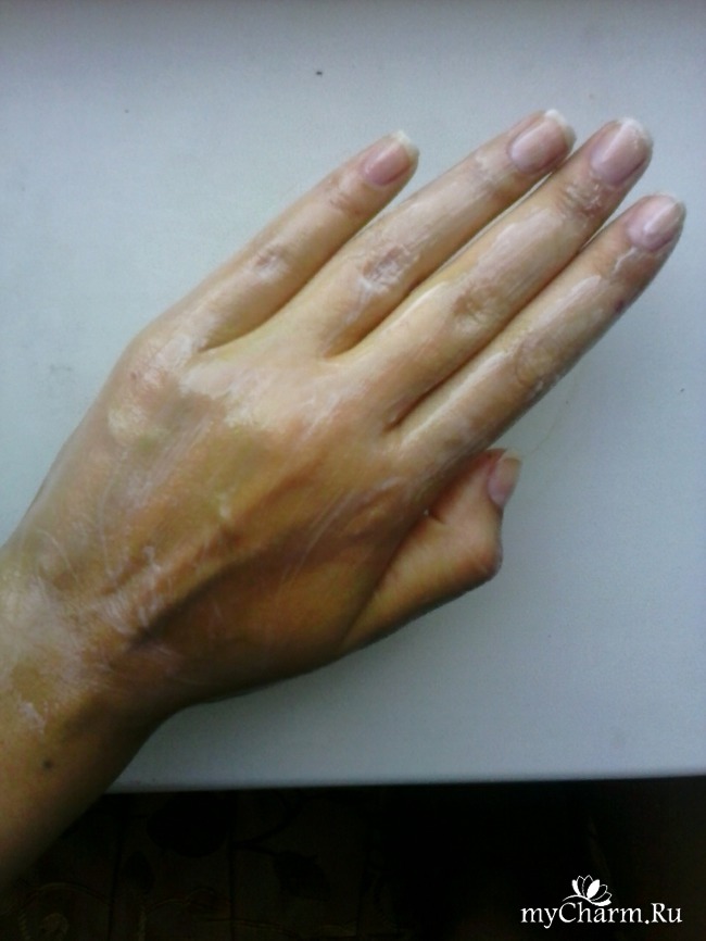 Сначала я нанесла как крем, растерла на руках и уделила внимание ноготкам и кутикуле. Крем оказался жирноватым. После нанесения такое чувство, что кожу намазали маслом. Зато ногти и кутикула выглядели очень хорошо! Результат не очень порадовал.