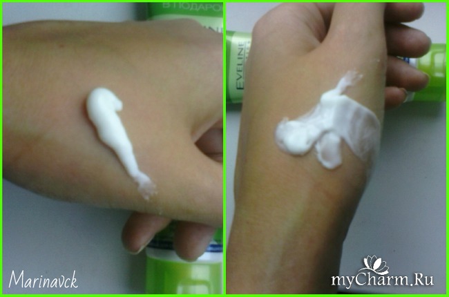 Нанесла равномерно крем на руки, подождала 10- 15 минут, крем впитался, но остатки еще были на коже. Я растерла его по коже, подождала еще пока он впитается. Все хорошо впиталось, кожа мягкая, не спорю. На внешний вид очень даже хорошо! Но на ощупь... мне совсем не понравились ощущения. Опять та же самая липкость, которая не проходила и через полчаса. В итоге я пошла, смыла остатки водой и уж потом почувствовала долгожданный эффект! Мне ничего не мешало, ничего не прилипало и руки были очень гладенькие и шелковистые на ощупь! Тут мне эффект понравился.