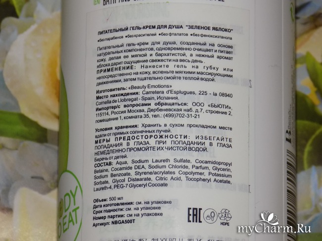 Питательный гель-крем для душа «Зеленое яблоко» (цвет белый, молочный, консистенция густая) содержит питательные кожу тела элементы. Потому он не сушит кожу после мытья, питает ее. Подойдет для чувствительной кожи тела, для шелушащейся. После мытья с гелем в душе и ополаскивания достаточно промокнуть тело полотенцем и еще хорошо бы нанести на него из той же серии крем-гель для тела. Кожа будет ароматной, увлажненной, шелковистой, приятной на ощупь.