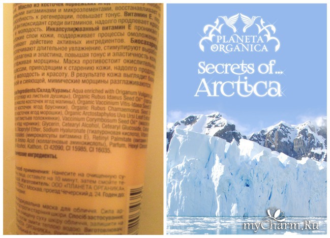 Консистенция, как у хорошего жирного крема. Цвет масочки - нежно-розовый. Пахнет сладко - ягодами, но не приторно. На фото, может быть, не видно, но если присмотреться, то можно увидеть капсулы витамина Е. Они ярко розовые в этом средстве. При соприкосновении с кожей лица легко растворяются. Его пользу я уже успела оценить и в других средствах Secrets of Arctica. Он усиливает действие активных компонентов, глубоко проникая в кожу.