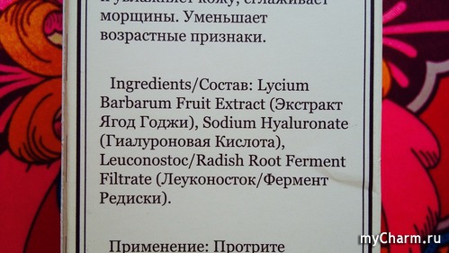 При этом следует отметить, что экстракт самих ягод в данном средстве представлен в максимальной концентрации. А это значит, что кожа получит все необходимое, чем богат тибетский барбарис. Гиалуроновая кислота, в свою очередь, поможет коже быть увлажнённой, подтянутой и эластичной.