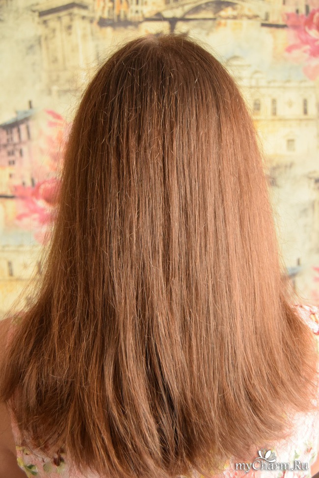 Вот так выглядят волосы после Tsubaki. Без кондиционера, масок и несмывашек. Волосы пушатся у меня очень сильно всегда. Но все же видно, что волосы довольно ровные, гладкие, блеска здесь не видно из-за освещения. А против пушистости я использую другие средства.