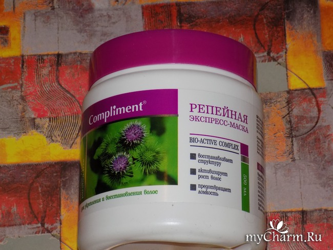 В данном обзоре расскажу о Репейной экспресс-маске для укрепления и восстановления волос от Compliment (Репейная серия).