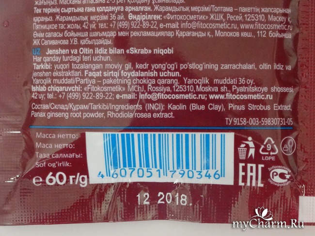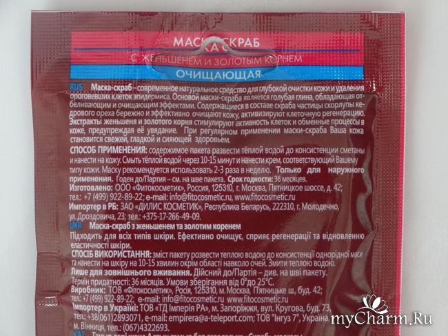 Итак, очищающая маска скраб с женьшенем и золотым корнем от "Fitокосметик".