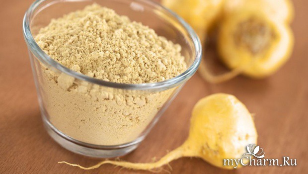 Порошок из корня женьшеня - оказывает благотворное влияние на общее состояние кожи, нормализуя обменные процессы, способствуя регенерации тканей. Питает и восстанавливает её.