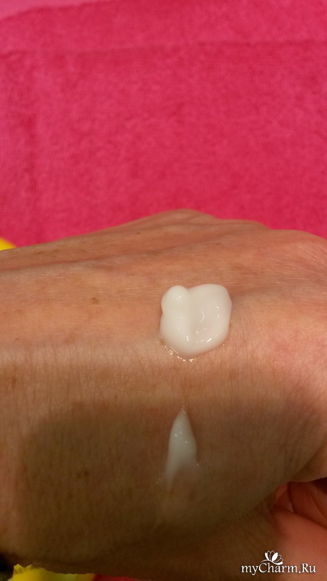 Молочко кремообразной, очень нежной консистенции. Пахнет просто изумительно, с легкими нотками цитрусовых. Флакон закрывается белой крышечкой, не съемной, а зафиксированной, что очень удобно, не будет падать.