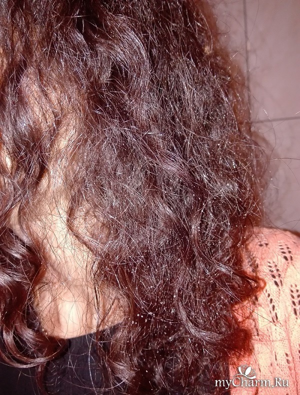 Я в основном наношу на волосы, когда они полностью высохнут. Распыляется очень хорошо, хватает всего несколько пшиков для всей головы. Вот так на моих волосах он блестит, как маленькие капельки росы.