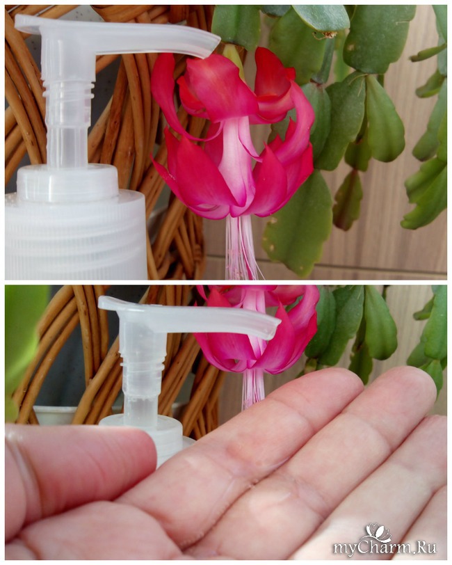 По консистенции гель не густой, напоминает жидкое туалетное мыло.