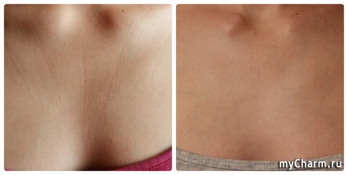 Эффект от применения набора Fillerina я заметила уже через неделю. Кожа в области декольте заметно посвежела, разгладилась, ушли заломы и мелкие морщинки. Через две недели результат был еще лучше. Морщин стало гораздо меньше, небольшие полностью исчезли, глубоки стали менее заметны, выровнялся микрорельеф кожи.