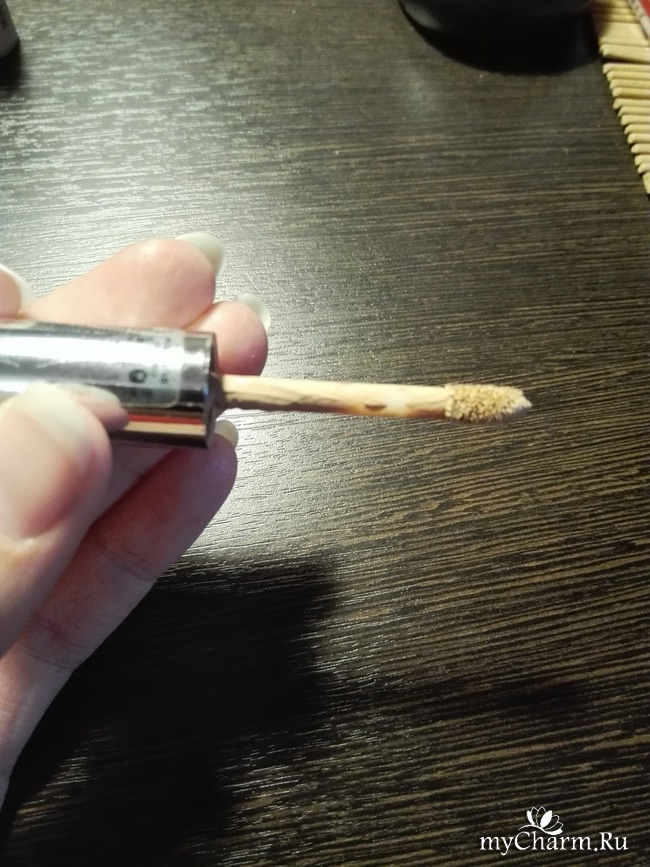 Но, не смотря на маленький объем, его хватает на долго. Все дело в том, что у него кисть, как у жидкой губной помады, и наносить его надо точечно на то место, которое требует корректировки.