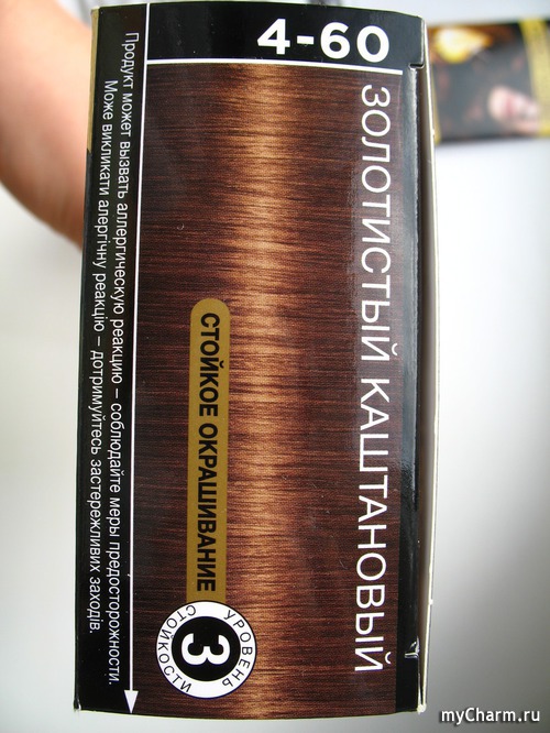 Познакомимся с "подопытным" поближе. Яркая картонная коробка привлекает внимание. Тон №4-60 Золотистый каштановый: