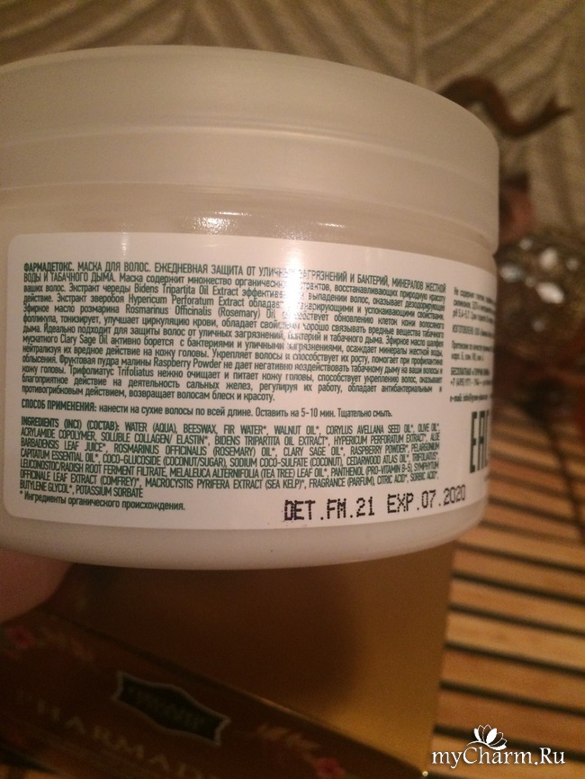 И начну с названия маски. Она, как я уже говорила, называется "Фармадетокс". Что же это означает? В моем понимании, в первую очередь очищение. Данное средство предназначено ото всех негативных повседневных внешних факторов. А именно: загрязненный воздух, жесткая вода, табачный дым, различные бактерии и прочее. Для меня эта маска подойдет в самый раз, хотя мой город нельзя назвать мегаполисом (но все же город миллионник).