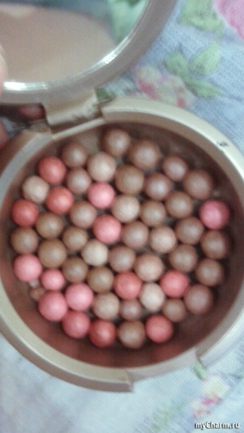 Румяна и зеркальце проложено поролоновой губкой, поэтому шарики с румянами не перемещаются, не крошатся, что очень хорошо для румян.
