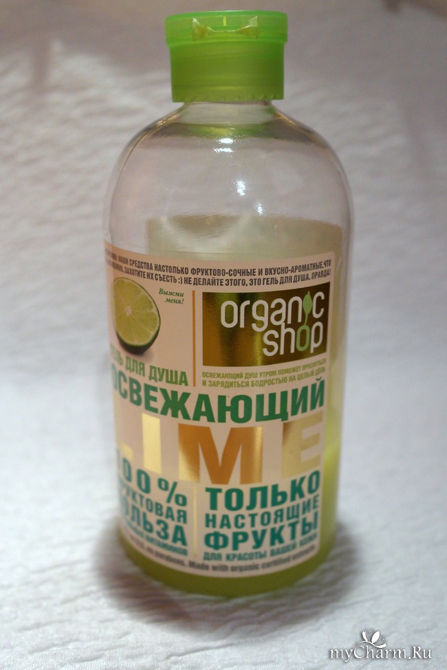 В начале августа зашла в небольшой магазинчик косметических товаров за очередным шампунем. Полки пестрят изобилием бальзамов, масок, шампуней, гелей и прочих товаров для ухода за телом. Разные бренды с разной ценой. Широкий ассортимент на любой вкус! Не смогла я пройти мимо ярких флакончиков. Открываю по очереди и нюхаю. М.. клубничный, ванильный, банановый, шоколадный, кокосовый... мне все нравятся, каждый по своему вкусный и привлекательный. И среди большого количества гелей, я выбрала "Лайм" от органик шоп. Может быть потому, что была жара и хотелось окунуться с свежесть и прохладу.
