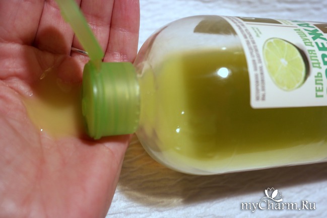 Консистенция не кремообразная, как мне нравится у некоторых гелей от "Буржуа", а жидковатая. Но, зато не залипает на дне и когда заканчивается, его не нужно переворачивать крышкой вниз, чтобы он стекал. Аромат насыщенный, сочный, фруктовый, характерный лимонный с нотками мяты.