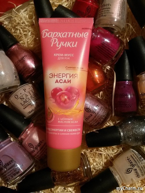 Сегодня хочу рассказать вам о моем знакомстве с Крем-муссом от производителя "Бархатные ручки" "Энергия Асаи".