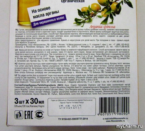 Маску на основе масла арганы выпускает российская компания «Фитокосметик». Об этой компании узнала, когда купила маску.