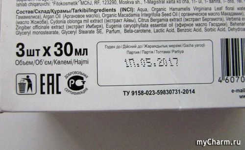 Внутри коробочки - 3 небольших пакетика – саше объемом в 30 мл каждый.
