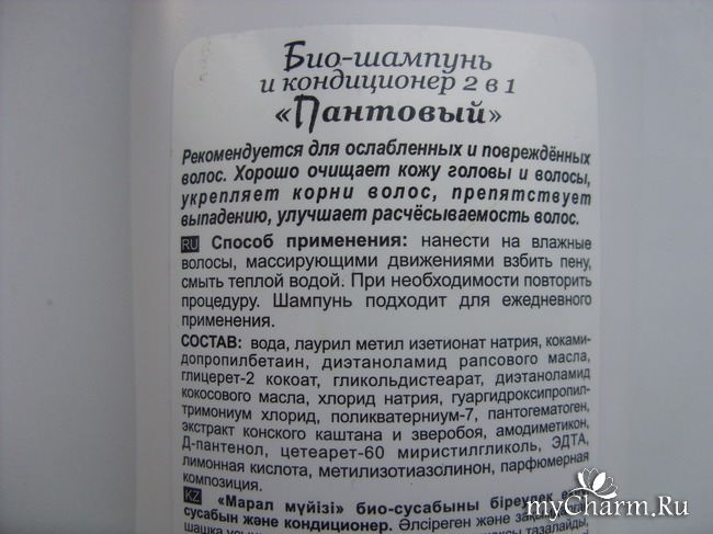 Итак, био-шампунь Пантовый представлен в пластиковом флаконе, с обратной стороны которого имеется этикетка, повествующая о средстве в полном объеме. Состав, кстати, представлен на русском языке, что для меня в настоящие дни актуально, ведь я с трепетом отношусь к косметике, используемой в своем уходе. Я стараюсь по максимуму избегать компонентов, способных навредить моей коже или волосам, хотя из всех случаев бывают исключения.