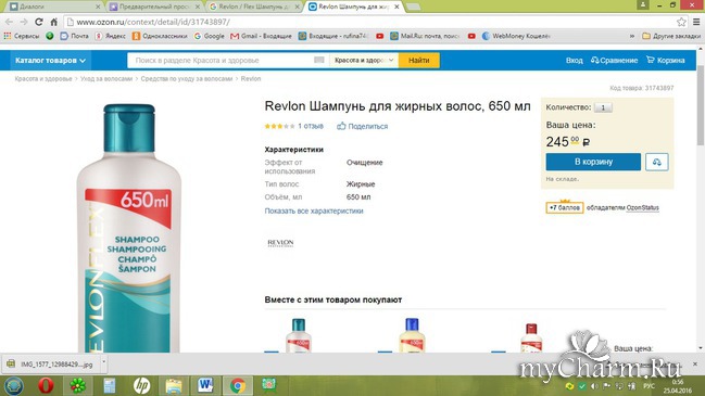 Читаю инструкцию о продукте на сайте продаж и вижу, что этот ревлоновский шампунь («зелененький», как я его про себя окрестила) разработан специально для жирных волос, что он нормализует секрецию сальных желез и уменьшает жирный блеск волос. В его состав входит органический растительный комплекс Tiolisina на основе аминокислот, который и создает баланс сальных выделений кожи головы. К тому же данный комплекс является хорошей профилактикой перхоти. В составе шампуня также имеется экстракт шалфея. Мыть волосы этим шампунем можно так часто, как хочется. Хоть каждый день. Объем у большой бутылочки царский – 650 мл!!! Хватить должно надооооолго, даже если у кого-то длинные и густые волосы. при этом - та-дам (!) - стоимость шампуня всего 225-270 рублей, в зависимости от интернет-магазина или обычного магазина, в которых он представлен.