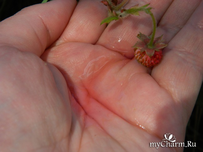 Пахнет гель сказочно: настоящей спелой земляникой. Удивительно, но факт: полная версия средства по аромату отличается от мини-формата – того ощущения «химии» не возникает, запах не удушающий, не раздражающий, не надоедливый. Аромат глубокий, насыщенный, особенно чудно он раскрывается в горячей бане.