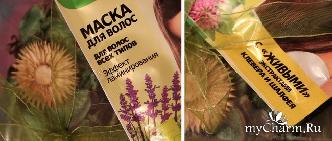 По мне так, самое первое, что бросается в глаза, это надписи про эффект ламинирования, живые экстракты и предназначение для всех типов волос. Вот так вкратце можно уже описать весь продукт: