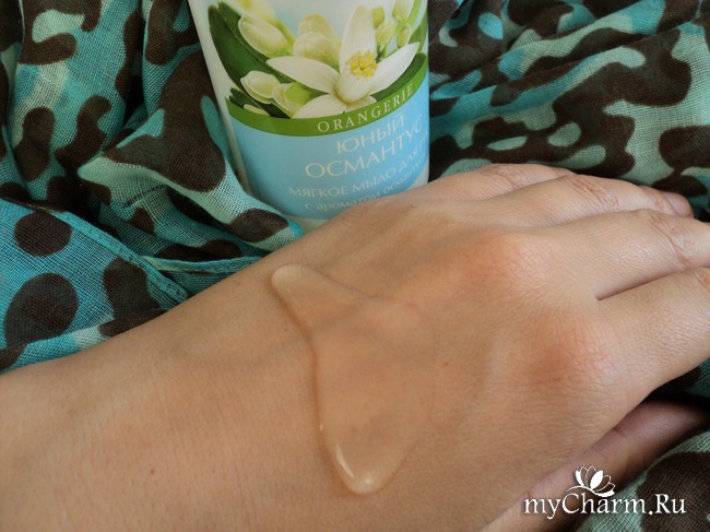 Мягкое мыло Юный Османтус серии Orangerie от Faberlic облачено в небольшой пластиковый флакон размытого белого цвета. На этикетке красуется дивный цветок. На обратной стороне нанесена информация о действии, составе и сроках годности. Объем, кстати, 200 мл, маловато, конечно, хотелось бы немного больше. Мыло имеет консистенцию средней густоты, оно абсолютно бесцветно и обладает приятным цветочным ароматом. На этикетке заявлено, что мыло имеет аромат османтуса, но, к сожалению, с этим растением я никогда не встречалась, поэтому судить о том, такой ли запах у рассматриваемого продукта не возьмусь. Скажу одно: он очень приятный, неприторный, сладковатый.