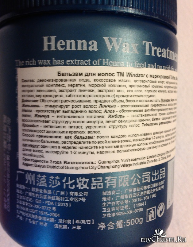 Вместе с этим бальзамом я приобрела еще один, о котором и хочу вам сегодня рассказать. Это продукт китайской компании Windsor Professionals. Знакомьтесь, бальзам-маска для волос "Henna".