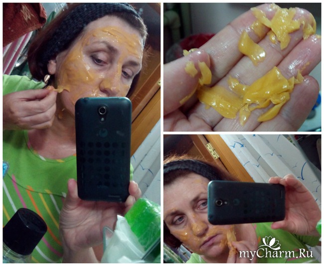 Возможно, если бы я вымазала всю маску, слой бы был толще и снимать ее было легче. А так мне пришлось постараться, п. ч. она снималась маленькими кусочками, хотя и легко отходила от кожи. Было такое впечатление, что под маской лицо обильно смазано маслом.